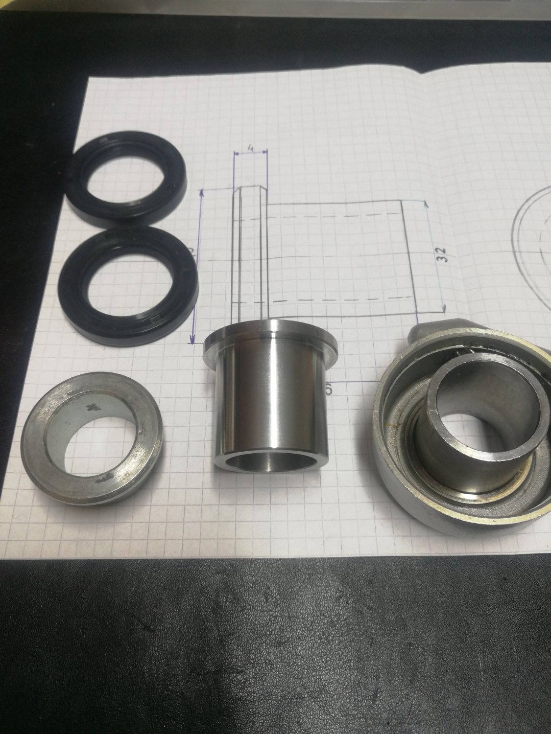 Nein nein ist ein Missverständnis. :lol: Ich meine die massen wie innen 25mm außen 32mm wie die originalen aus Edelstahl. Ich dachte ich muss die aus Alu etwas stärker machen so 35 aussen aber das kommt auf das selbe hinaus weil ich die Hülse zum Lager hin eh 25-32 machen müsste, entweder durch anfasen oder eine Stufe