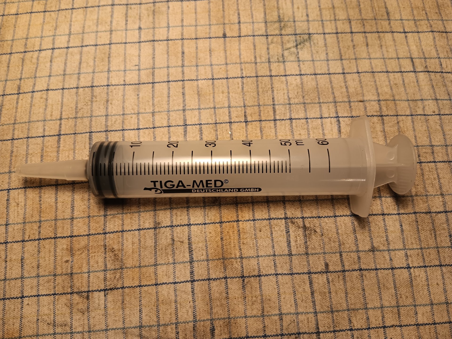 So konnte ich eine Spritze mit Öl füllen und einfach vorher und nachher wiegen und auf cm^3 umrechnen.