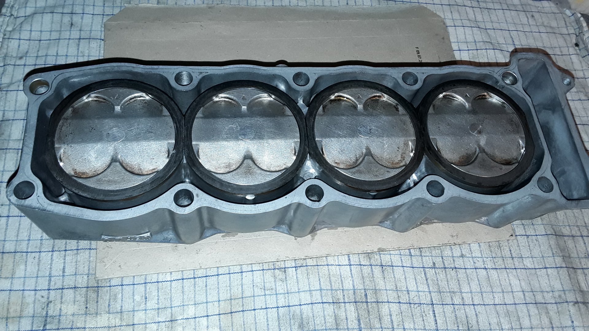 Die Zylinder sind auf 72,98 Durchmesser gehont, da meine Kolben 72,93 haben. So ergibt sich knapp das kleinste zulässige Laufspiel für maximale Lebensdauer und geringstes Kolbenkippen. So jedenfalls der Plan haha.