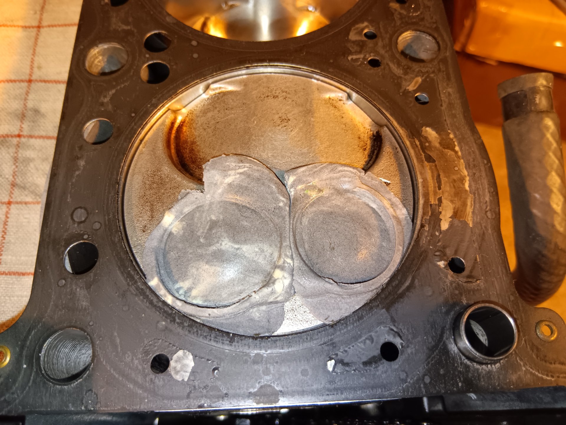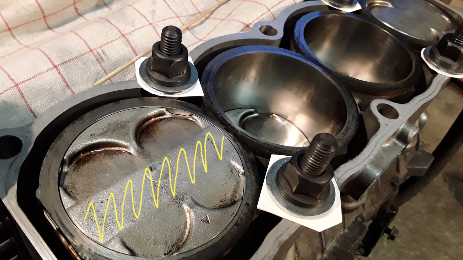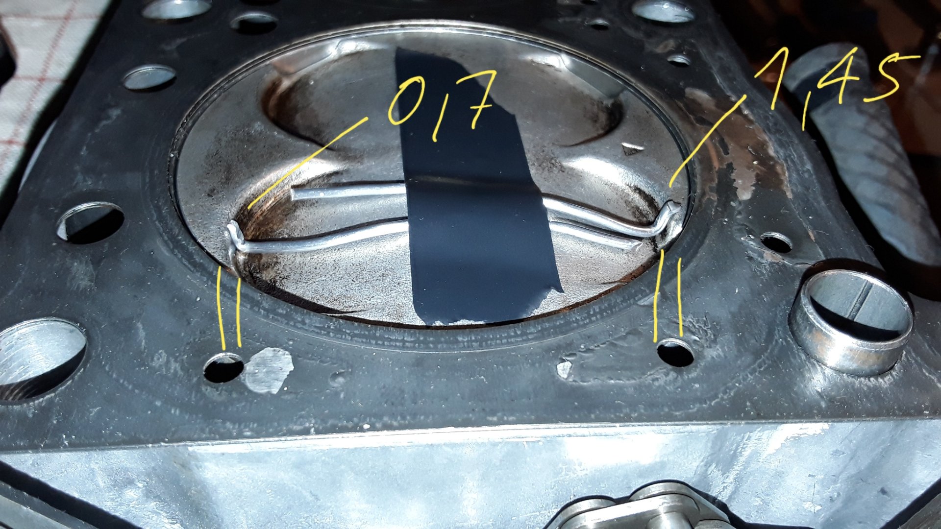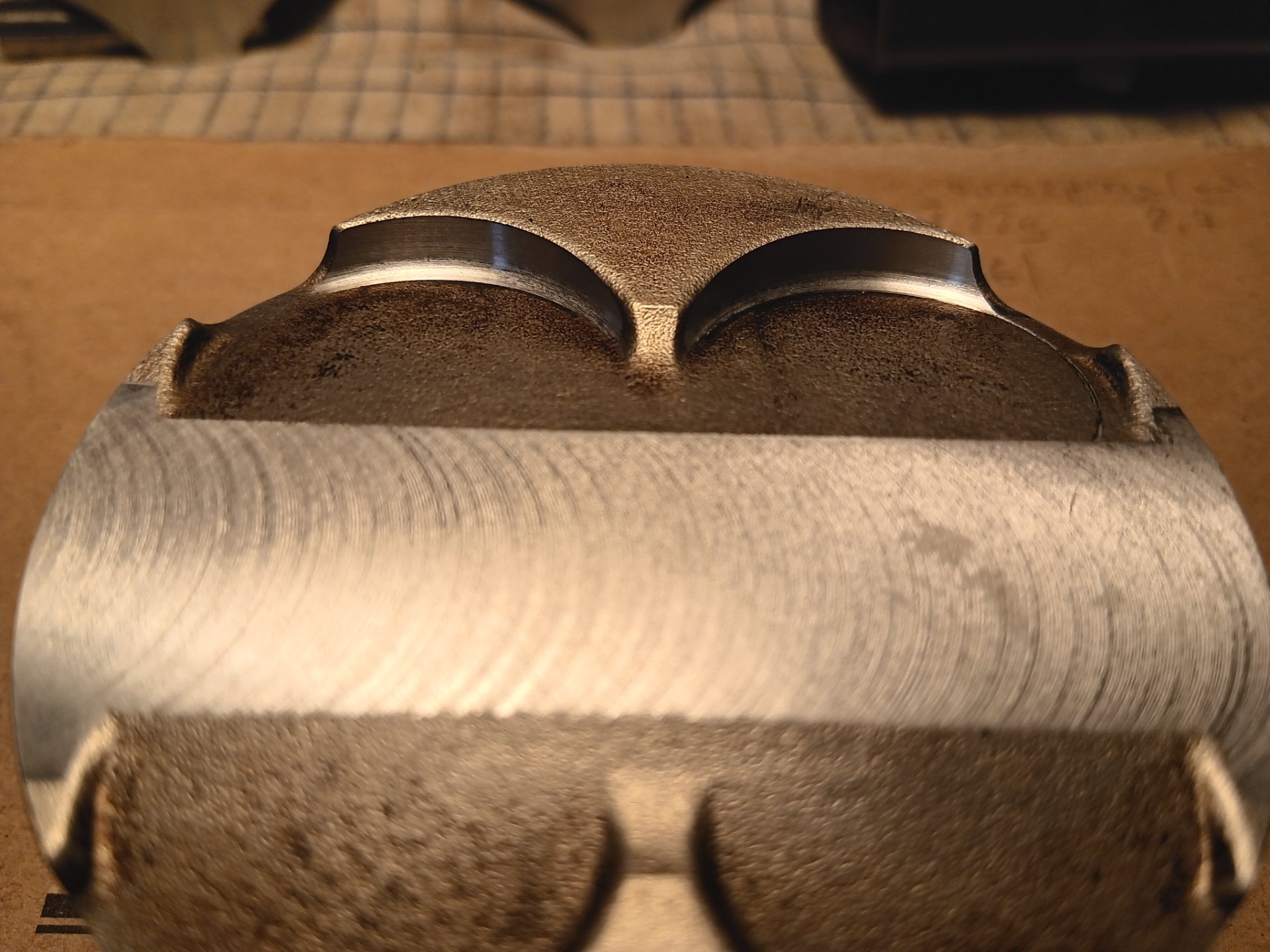 -Den erhabenen Bereich vom Kolbenboden mindestens am Rand abtragen, so dass die Quetschkante mit Zxr Kopf ringsherum ca. 0,75mm beträgt.
