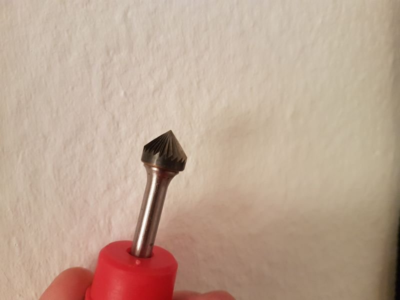 An der Fase sieht man übrigens gut, ob die Bohrung unten mittig heraus gekommen ist.