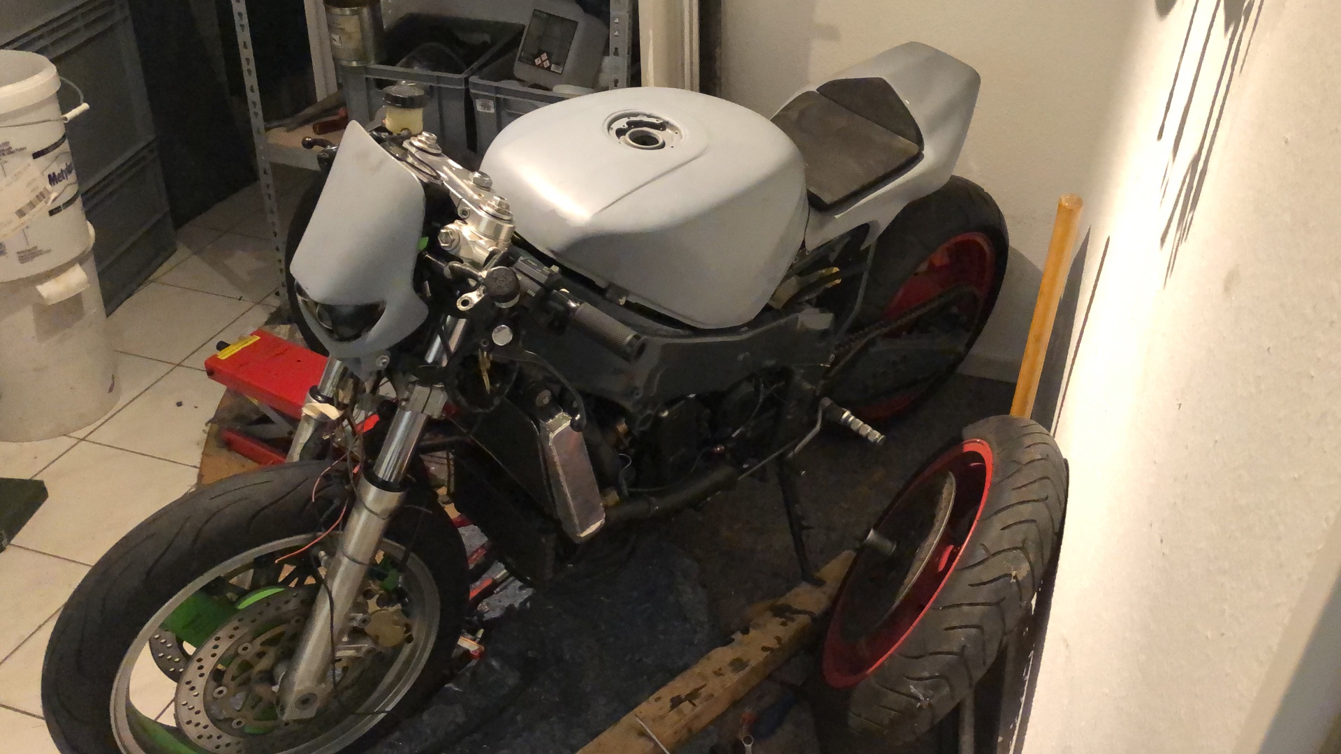 Fehlt zwar noch an kühlsystem, gabel, Elektrik, vergaser, reifen. Aber sieht schonmal wieder recht komplett aus