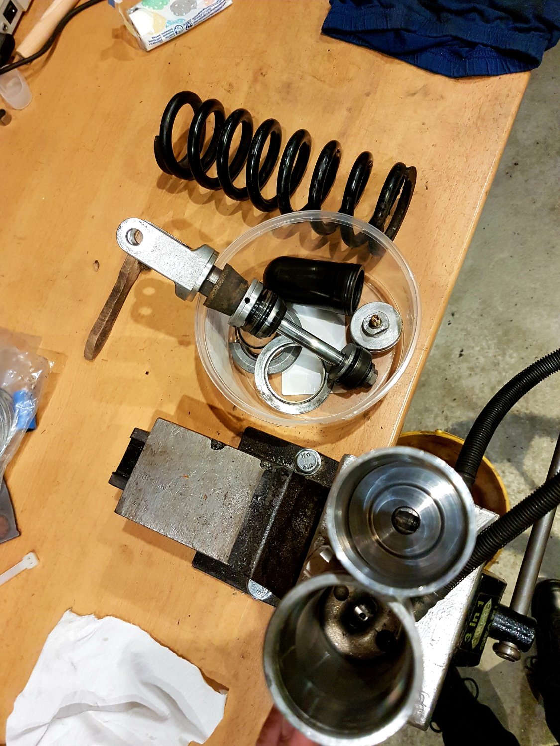 Ein K-Federbein aus dem Regal geholt, Öl gewechselt und gegen das undichte verbaute J- Ferderbein getauscht