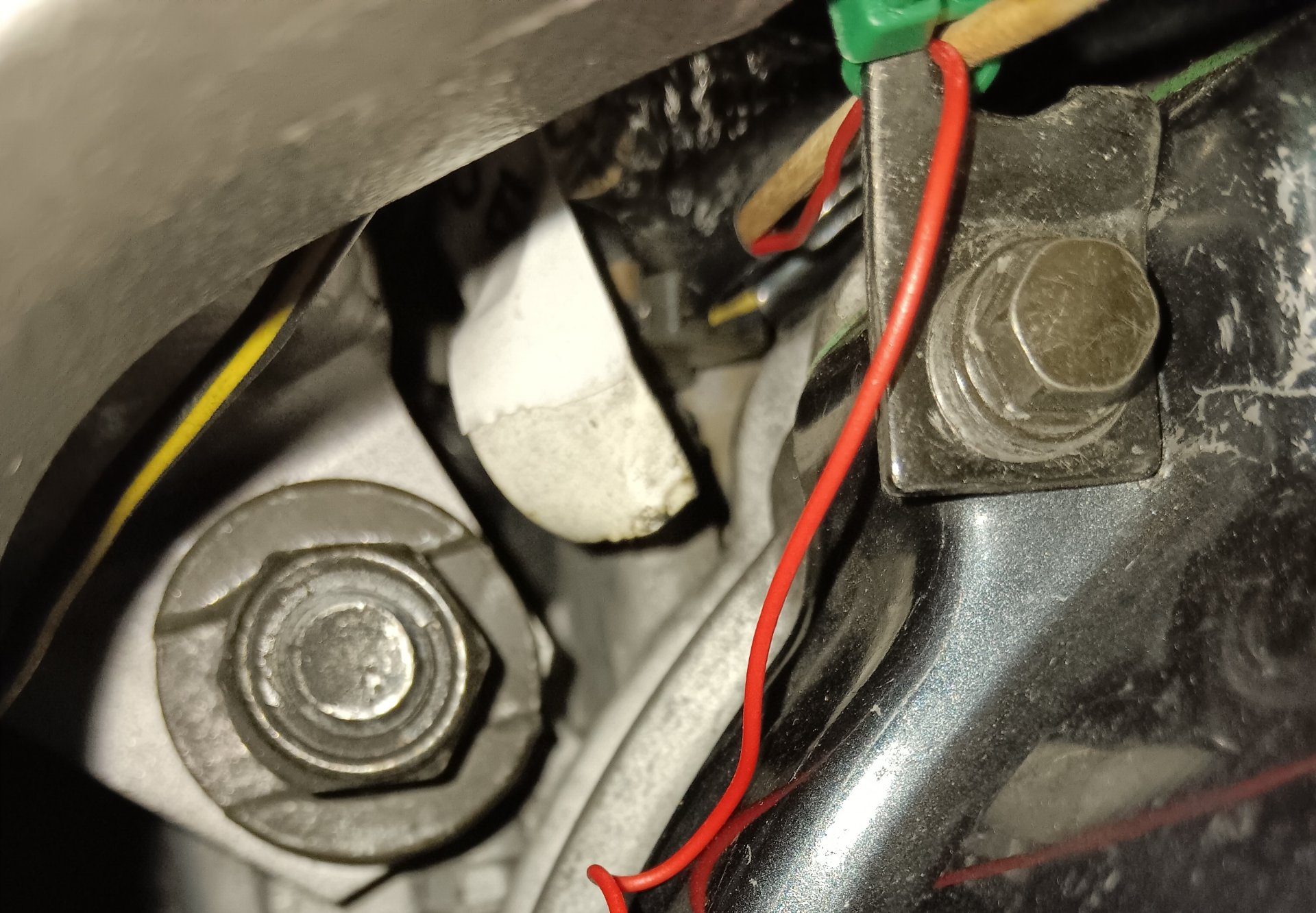 Das geschaltete Zündplus geht jetzt direkt zum Quickshifter und der Endschalter resetet über die Masse. Masse direkt neben dem Enschalter von einer Motorgehäuseschraube. Somit kein unnötiges unterbrochenes Pluskabel was kurzschließen könnte.