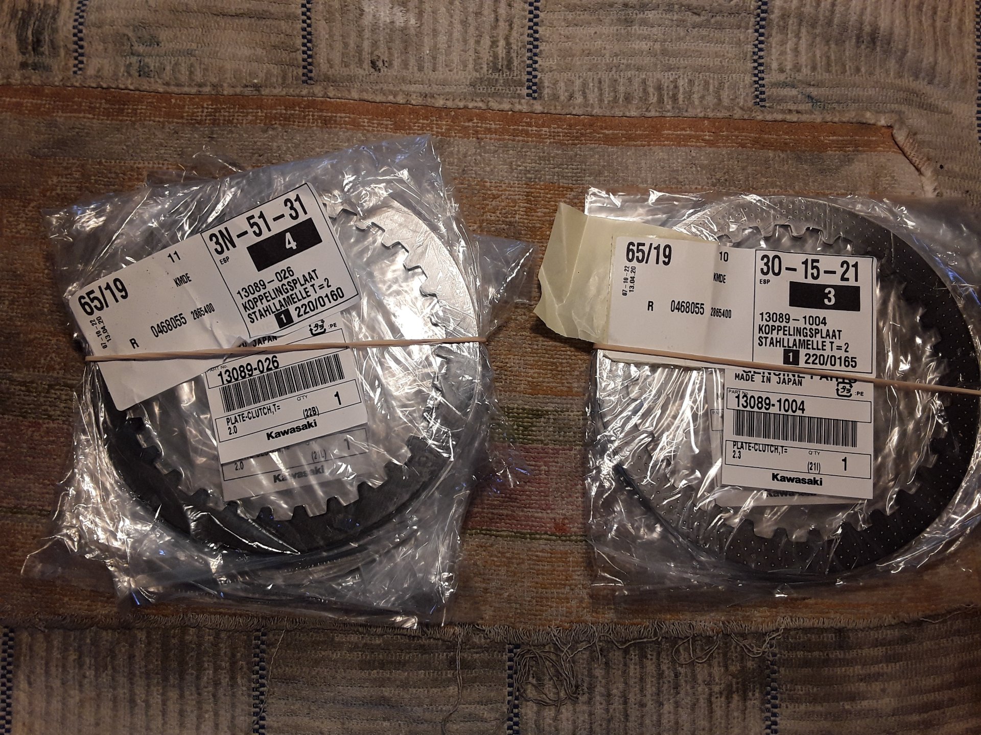 Es scheint nirgendwo ein Grund für den versetzten Einbau der letzten Scheibe bekannt zu sein, angeblich auch nicht bei Kawasaki selber. Ich kann mir auch keinen wichtigen vorstellen. Daher würd ich das bei Verwendung von dünneren Scheiben einfach immer so machen.