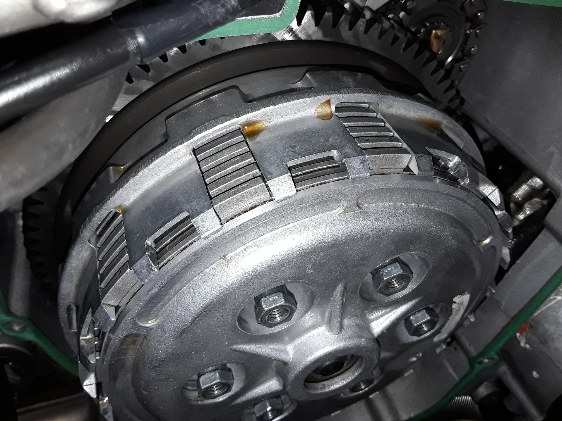 Mit den Federn so unterlegt ist die Wirkung der Rutschkupplung beim normalen Fahren wieder geringer. Mit normal meine ich maximal 2 Gänge aus Drehzahlen unter 10000 runterschalten.