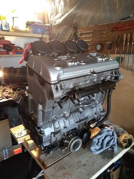 Nach ein paar Kilometer auf der Straße sowie der Rennstrecke das nächste Problemchen. Der Motor muß wieder raus! Das Aggregat genehmigte sich verdammt viel Öl. Schnell wurde klar, so kann es nicht bleiben. Vermutlich die Ölabstreifringe defekt.