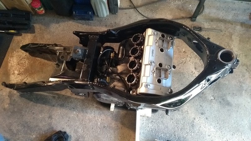Hab den Rahmen dann in Schwarz lackiert, die Hochzeit vom Motor und Rahmen stand bevor und somit ging es wieder an den Zusammenbau.