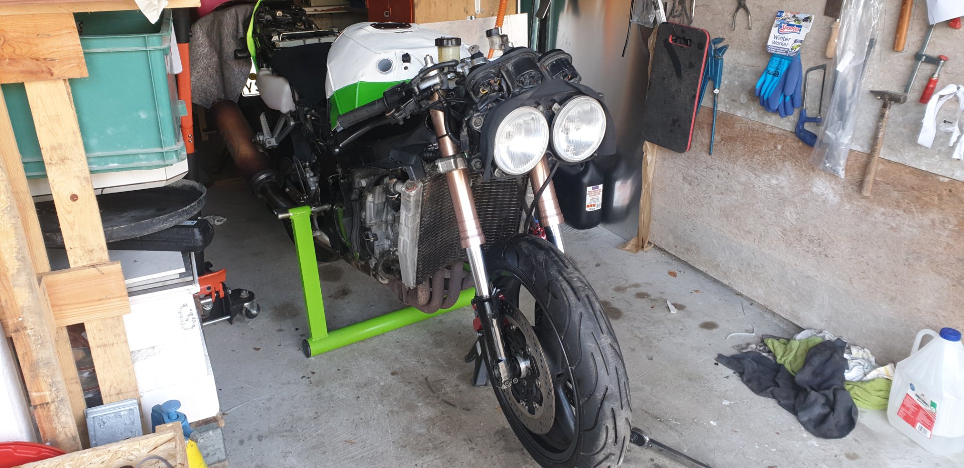 Also wollte ich wieder eine ZXR 750 haben. Wie der Zufall es wollte konnte ich vor kurzem eine erwerben. Keine Schönheit, aber Sie will wieder auf die Strasse (so Gott will).