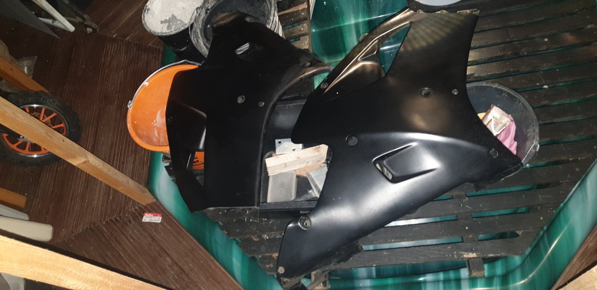 bin auch schon etwas weiter.Das ehemalig Schwarz gerollte Moped bekommt langsam wieder ihre Farbe zurück.Hab bei Ebay für 49Euro einen Italienischen Bagster geschossen, war noch neu verpackt.Die Seitenteile kommen morgen dran...