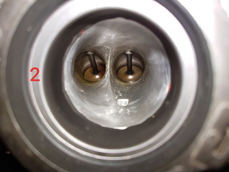 Eventuell bestand die Undichtigkeit schon seit Einbau des 9ér Motors. Das würde zumindest die dunkle Färbung im Krümmer dieses Zylinders erklären.
