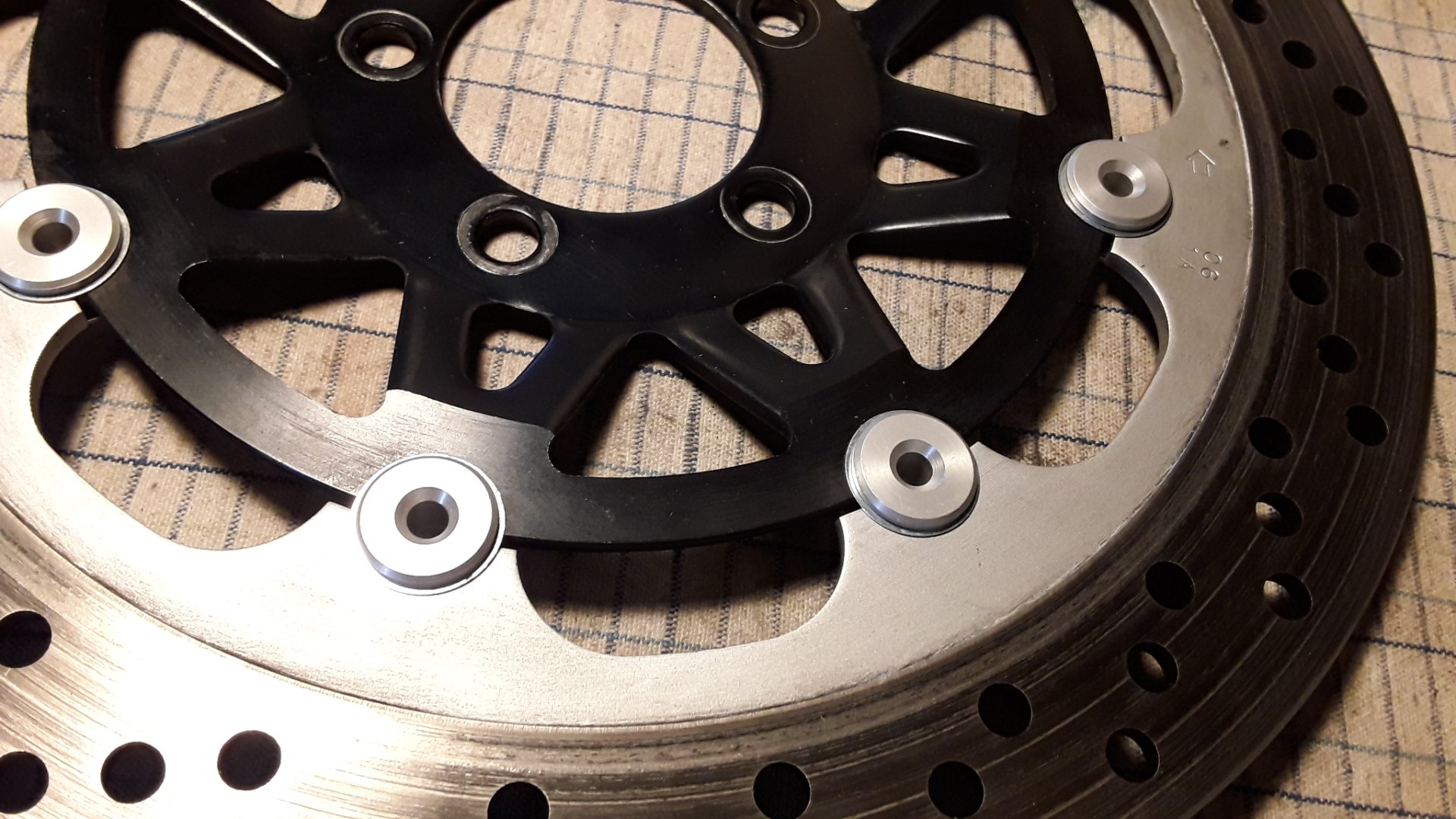 Die neuen floater sind eloxiertes Alu. Durchmesser alt 15,8. Neu 15,74.