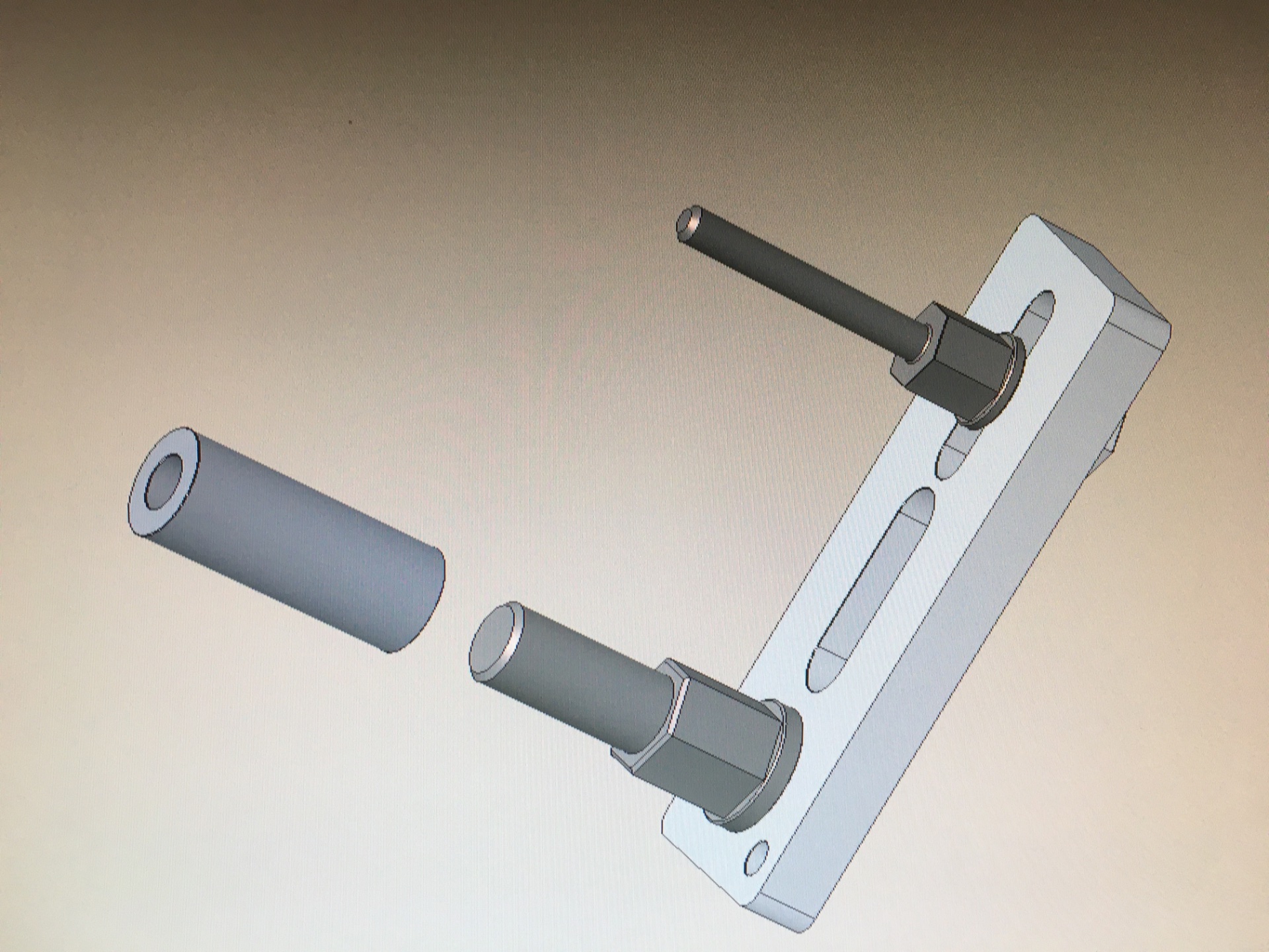 Im Prinzip brauchst du einen Bolzen, der in die Schwingenachse geht, eine Hülse mit Bund, die an der Motorhalteschraube hinten, oben befestigt wird und einen Bolzen, der da rein passt.