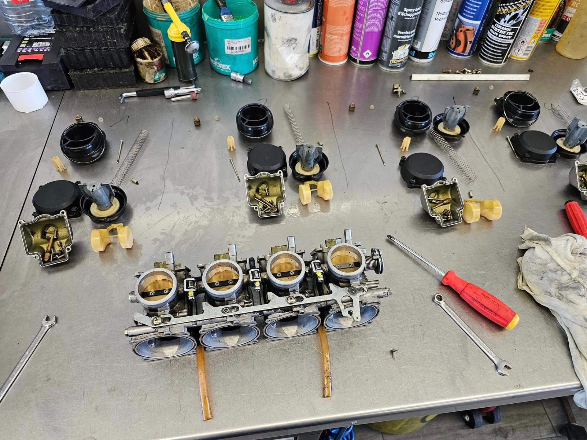 Habe den ZX-7R Vergaser mal vorbereitet zum Reinigen.