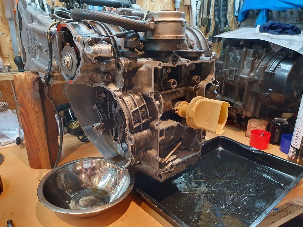 Also wieder raus damit und den 750 Motor wieder rein. Den 9er hab ich dann immer wenn mal ein wenig zeit war teilzerlegt und Teile getauscht.