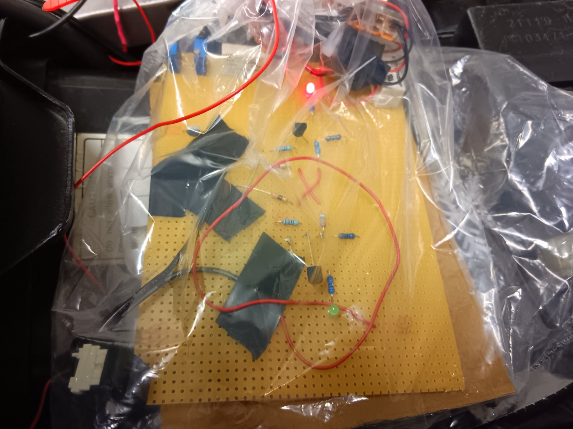 Hier sind die beiden 8A Relais zum späteren Unterbrechen der Zündspulen draufgelegt. Ohne diese wäre die jetzige Schaltung mit Impulsgeberunterbrechung etwa die halbe Größe, ca. 55x45mm.