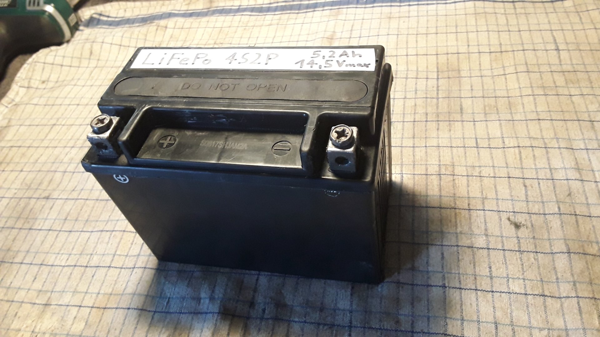 Das Gehäuse wurde ausgeschlachtet und die Batterien innen an die normalen Anschlüsse angeschraubt, verlötet und versiegelt