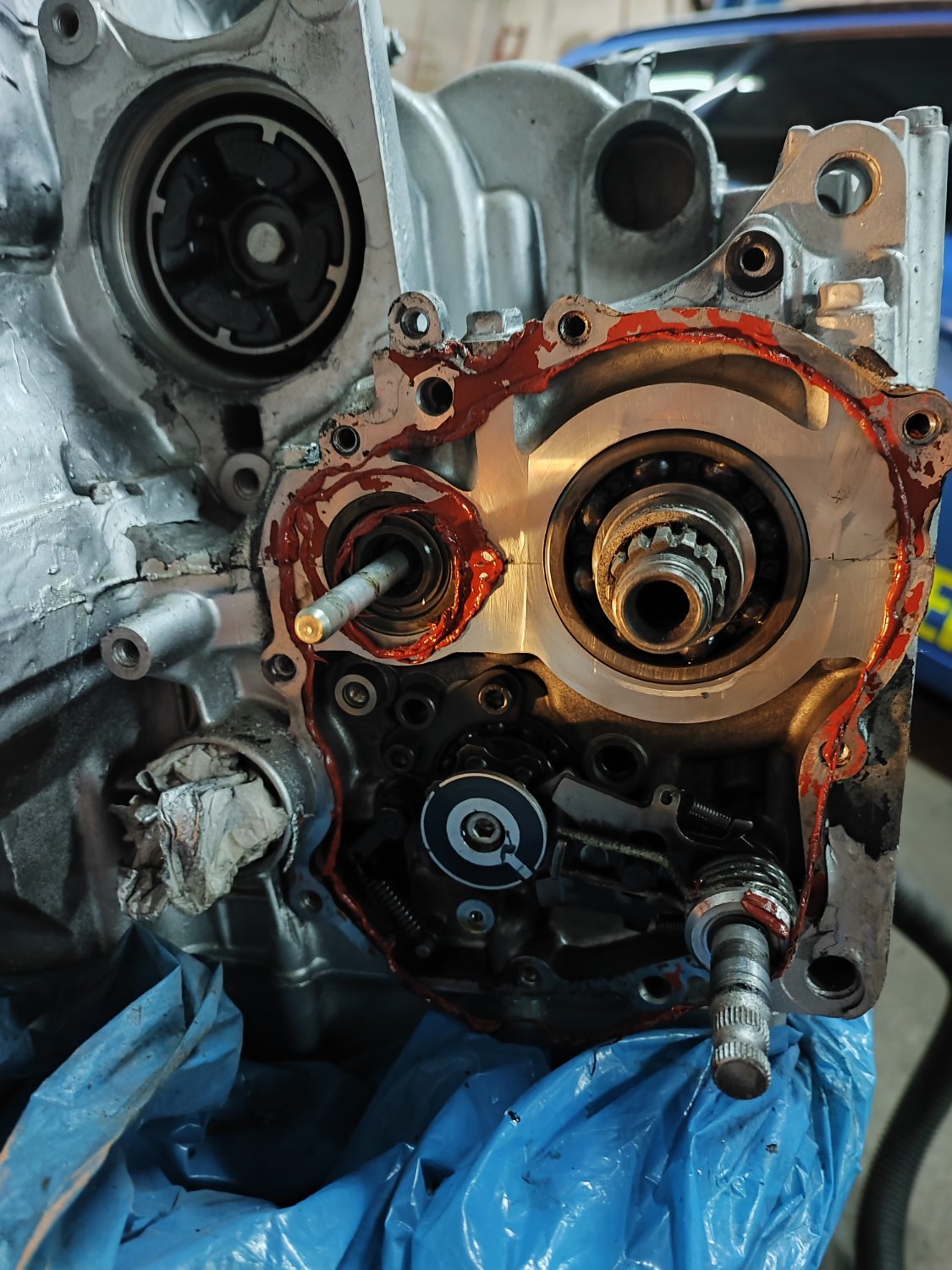 Das Bauteil sitzt hinter der Kupplung also musst ich demzufolge die Kupplung auseinander bauen