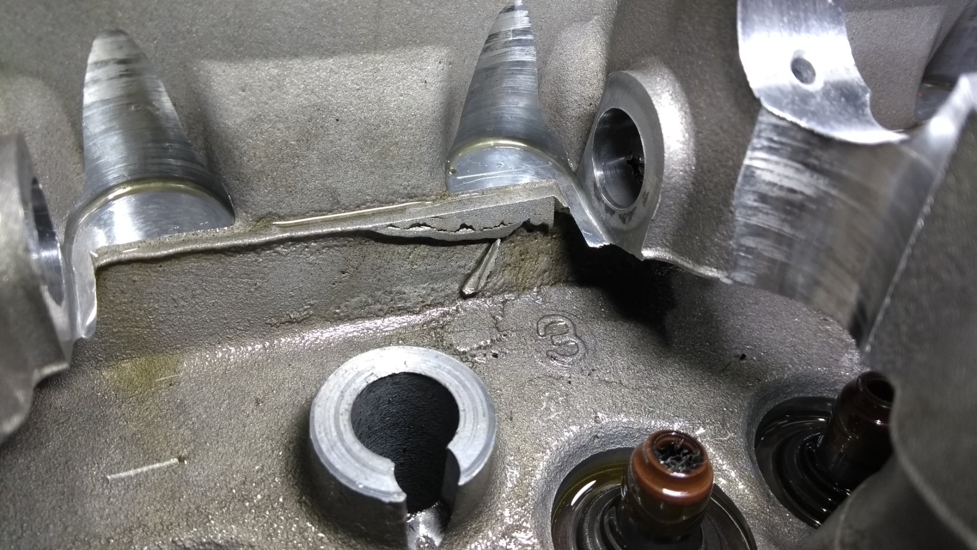 Du kannst auch nachsehen, ob die Gussgrate ok sind im Zylinderkopf. Das Teil auf dem Bild hing bei mir praktisch nur noch am seidenen Faden. Ist fast 1mm dick. An 2 anderen Stellen waren kleinere Teilchen durch bloßes drüber Reiben lösbar, etwa 2-3mm groß.